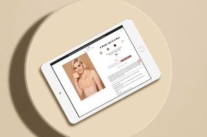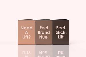 Nue's founder came to me with some rough sketches of her ideas, including a logo that she had designed herself. Immediately I knew that would be a great part of her story, and made sure to keep it as close to her original idea as possible. With a rounded, matching 'N' and 'U', it creates a great feeling of symmetry while also speaking to Nue's main product — breast tape made in all shades, for women of all colors.